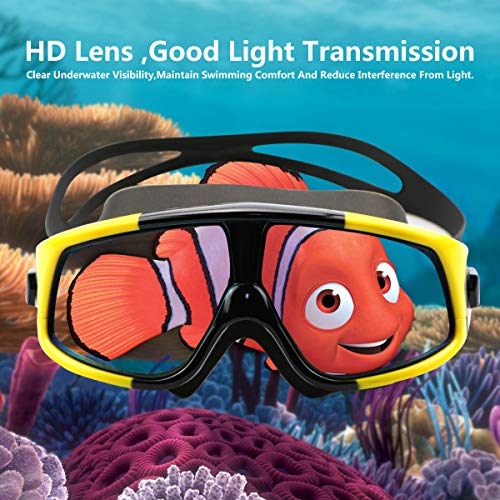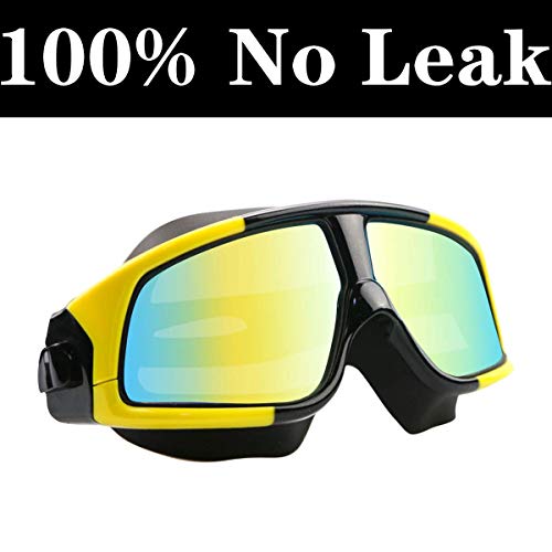 Featuring a 3D Ergonomics large frame design, it could fit on different facial forms around your eyes and not leave a mark on your face. No water leak in the swimming goggles