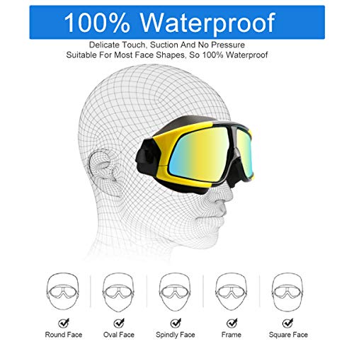 【LEAKPROOF】Featuring a large, 3D Ergonomics frame design fits on different facial forms around your eyes. No water leak in the swimming goggles