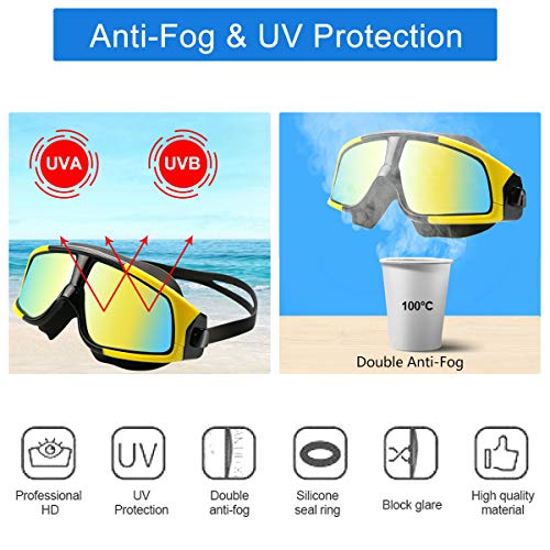 【LARGE LENSES & WIDE VISION】Large frame and perfect curve lenses Design help you to have a Broader View and a Better swimming experience.