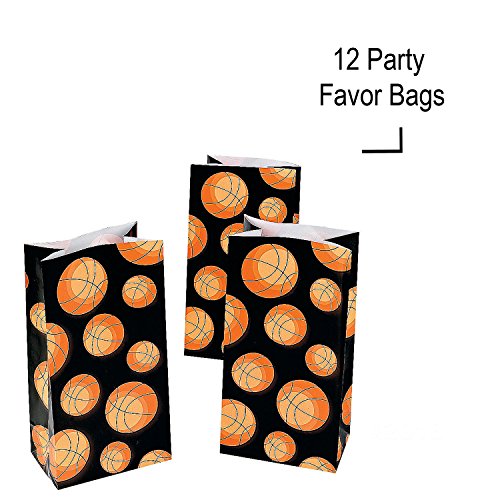 (12) Basketball print paper favor bags. 5 1/4″ x 3 1/4″ x 10″