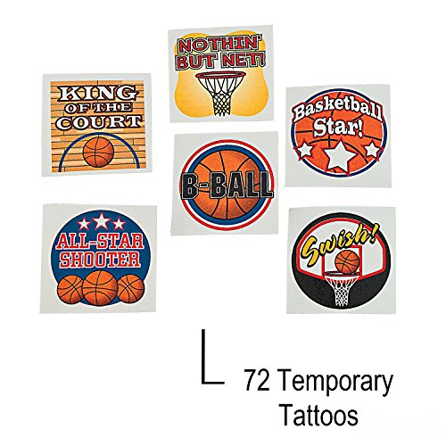 (72) Basketball themed temporary tattoos. Safe and non-toxic. (12) Basketball plastic whistles.