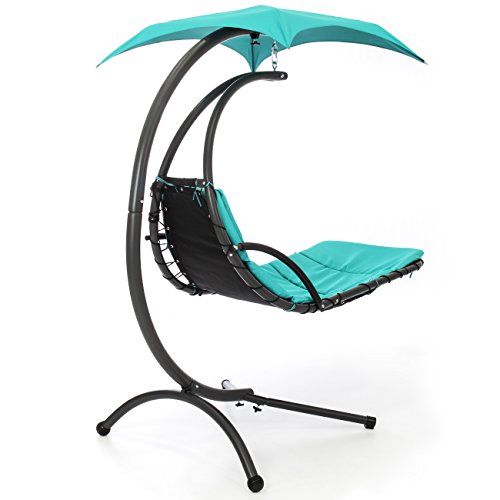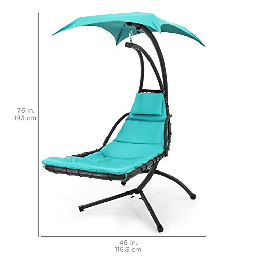Best Choice Products Outdoor Hanging Curved Steel Chaise Lounge Chair Swing w/Built-in Pillow and Removable Canopy…