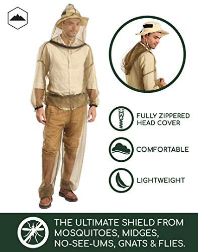 🔥 A GREAT COMPLEMENT TO YOUR GET-UP — Unlike other anti-mosquito clothing, these unisex bug jackets have a fully zippered head cover for instant access to your face. Campers, explorers and hikers can now enjoy meals & drinks without the hassle of removing the cover. This set of jacket and pants is soft and durable, plus it’s non-toxic. Now you can move with complete ease and freedom. You might just forget you’re wearing one.