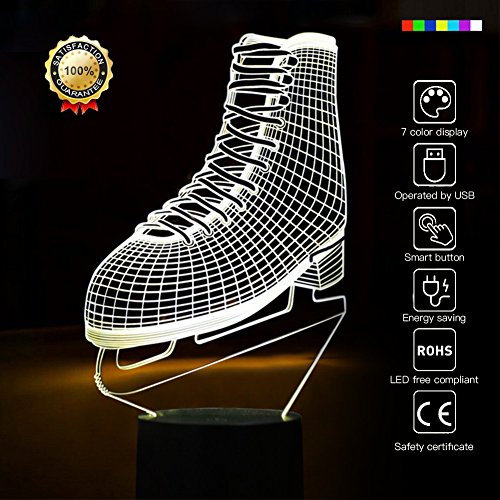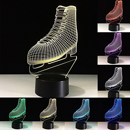 Ice Skating 3D Night Light Ice Skates 3D Led Optical Illusion 7 Colors Change Night Light Touch Button Creative Design…