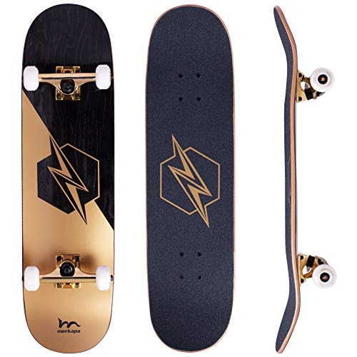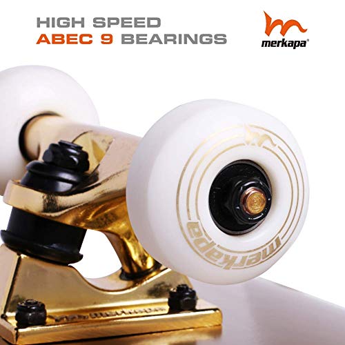 M Merkapa 31″x8″ Skateboard for Adults Teens Youths Kids Beginners, 8 Layer Canadian Maple Double Kick Deck Concave Fit for Skateboarding, Cruising, Carving, Tricks (with T Tool)