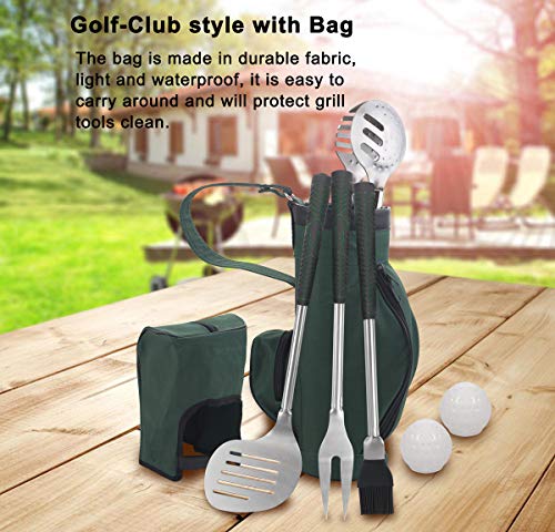 POLIGO 7pcs Golf-Club Style BBQ Grill Accessories Kit with Rubber Handle – Stainless Steel BBQ Tools in Bag for Camping…