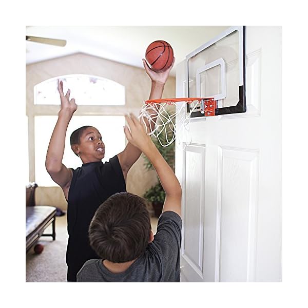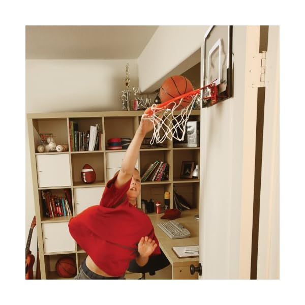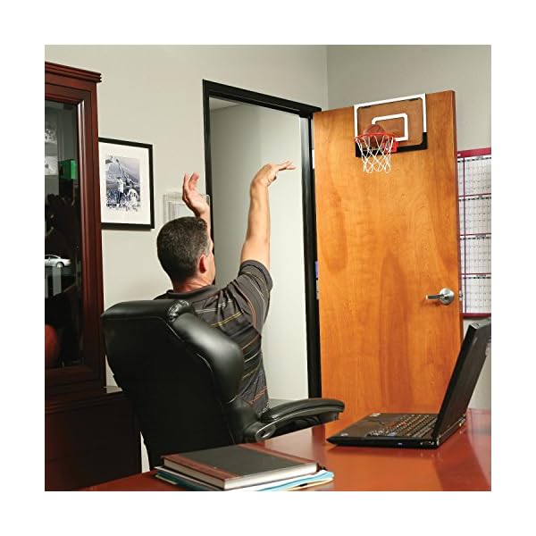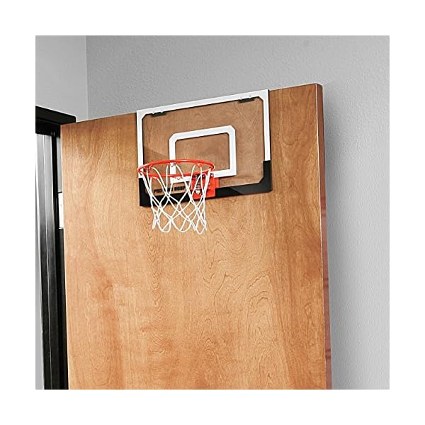 An indoor basketball hoop with the look, function, and durability of a professional hoop, the SKLZ Pro Mini small-scale basketball system changes the face of over-the-door basketball hoops forever. Goodbye Nerf hoops, hello realism. The Pro Mini features an 18-by-12-inch clear shatterproof polycarbonate backboard, giving it the appearance of the hoops at your favorite NBA arena. Even better, the Pro Mini includes a pro-grade, spring-action breakaway steel rim. Want to throw it down like Dwight Howard or LeBron? The breakaway rim will snap down and back up as you jam, protecting your hands with every dunk. It’s the perfect gift for the basketball freak in your family, and makes a great addition to the home, office, or dorm room.