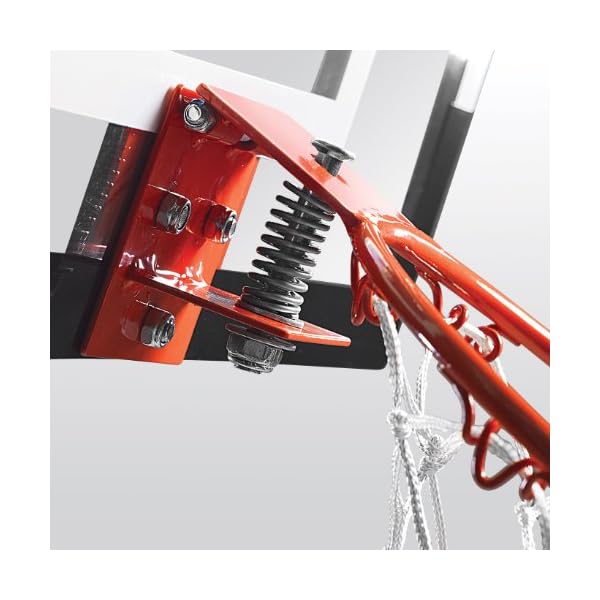 BREAKAWAY RIM. With a 9” diameter spring action “break-away” steel rim, you can practice your dunks anytime, anywhere. The spring will instantly bounce the rim back into place once you make the shot