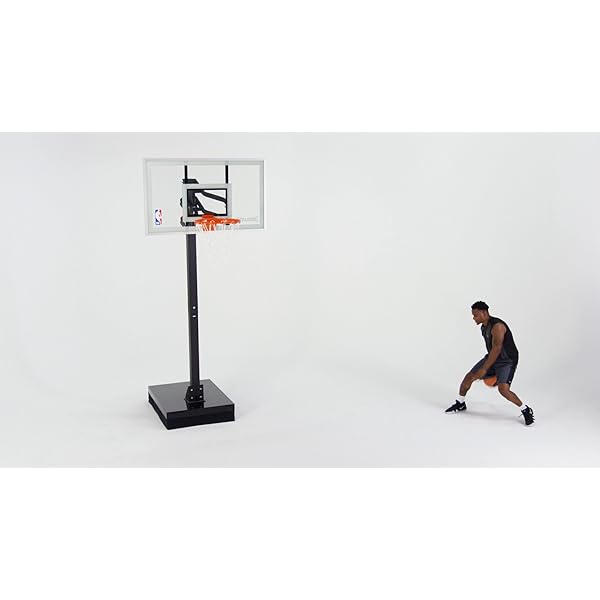 Backboard has 2′ offset from pole.54 inches glass basketball system has a 4 inches square steel PolePro image breakaway rim