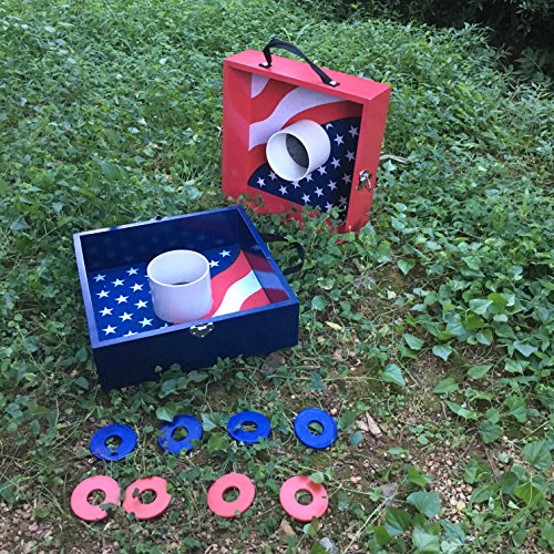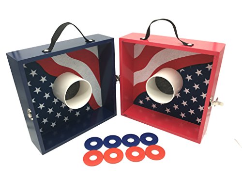 PREIUM YARD GAME:Include Two 13.5″ L x 13.1″ W x 3.7″ H felt-lined washer boxes latch together, outside is sealed with durable laminate for protection against scuffs and scratches,8 Washers (4 red, 4 Blue) Included.