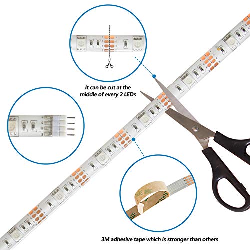 Super flexibility: Length of strip, 0.5 meter(1.64ft).Flexible strip lights can be cut between every led, the light strip has 3m adhesive for attaching behind.