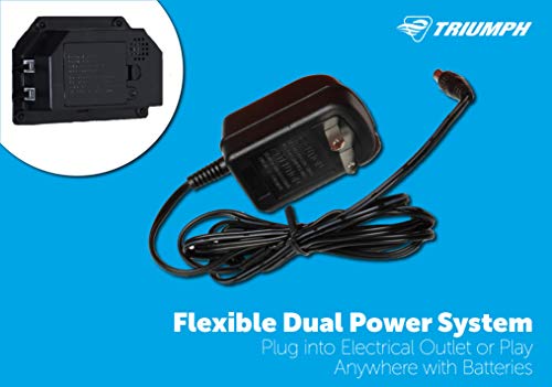 The Triumph Big Shot II Double Shootout is the ideal choice for competitive head-to-head arcade basketball. Featuring large 1.5” diameter poles and durable metal rims, its sturdy frame construction is built to last and take on vigorous game play. LED electronic scoring with a time clock keeps track of the action for 8 different games. Easily start and stop games and navigate between each game modes using the included control panel at the base of the shootout. The Big Shot II’s electronics have a dynamic and flexible dual power system that allows you to play using the included AC adapter, or break free from the electrical outlet and play anywhere with a battery-powered option (3 AA batteries not included). The set arrives ready to play with 4 basketballs and a pump and needle. When finished playing, the frame folds and locks into place for easy storage when not in use (39.5” L x 49” W x 81” H). Compete with the best using the Triumph Big Shot II.