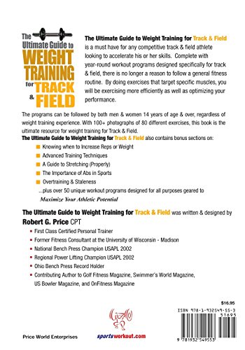 Your book has helped me improve immensely throughout my high school track and field years. In my freshman year I placed 8th in my State Championship meet. In that year I had no experience with weight training whatsoever. During my sophomore year after using your book and following the different programs for pre and off-season, I improved my place from 8th to 2nd. –Jen A, State & National finisher