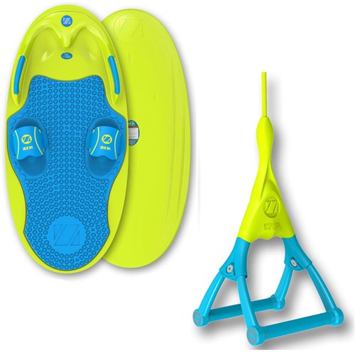 Get ready for fun in the sun with ZUP’s You Got This 1.0 Board! This bright lime green and blue board acts as a wakeboard, wakesurf, boogie board, kneeboard, and even water skis – all on one versatile board! This board has an HDPE plastic molded construction to withstand years of use. It features slip-in foot straps that also work as elbow pads and kneepads as needed. This board includes integrated side handles with soft hand grips and an integrated tow hook, allowing it to be controlled from side to side. Stand with your feet facing forward to wakeboard or have your feet pointed sideways to surf across the waves. The buoyant design is perfect for young or inexperienced riders getting out on the water for the first time while still providing excellent control. Everyone of all ages will enjoy the summer on ZUP’s You Got This 1.0 Board!